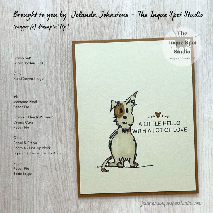 - Lightly drawn with Pencil, outlined with a Fine-Tipped Sharpie Marker, erased the pencil marks and colored with the Light Crumb Cake and Pecan Pie Stampin’ Blends Markers.
