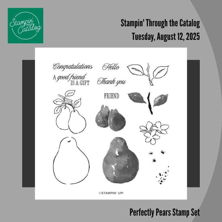 Influences: Facebook’s Stampin’ Through The Catalog stamp set choice for today: Perfectly Pears.