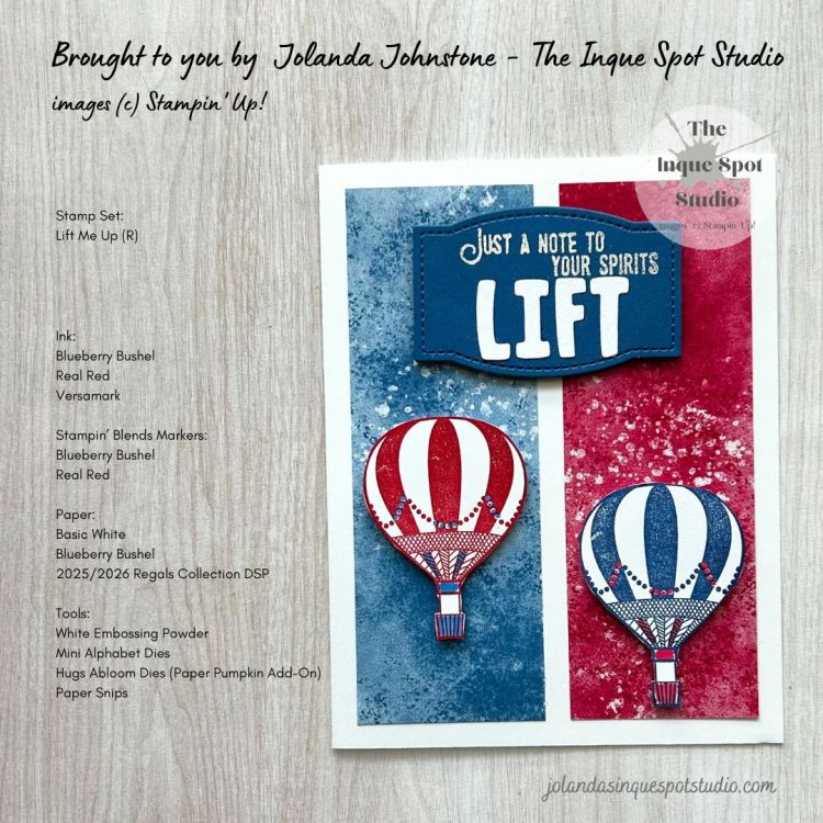 - The Balloon image, also from the Lift Me Up stamp set, was stamped in both Blueberry Bushel and Real Red inks.