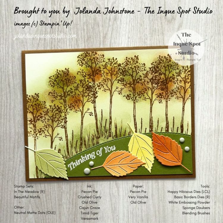 My design choices were influenced by: Inspired By (#353) Leaves; Inkspirational (#350) Word: Trees; Inspiration Station (#77) Autumn Inspiration Photo for the colors as well as the theme and sharing with Time Out (#297) as my favorite Season is Fall