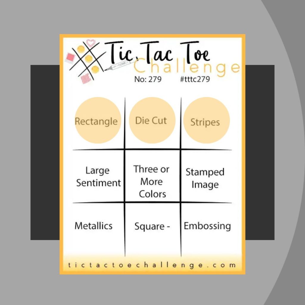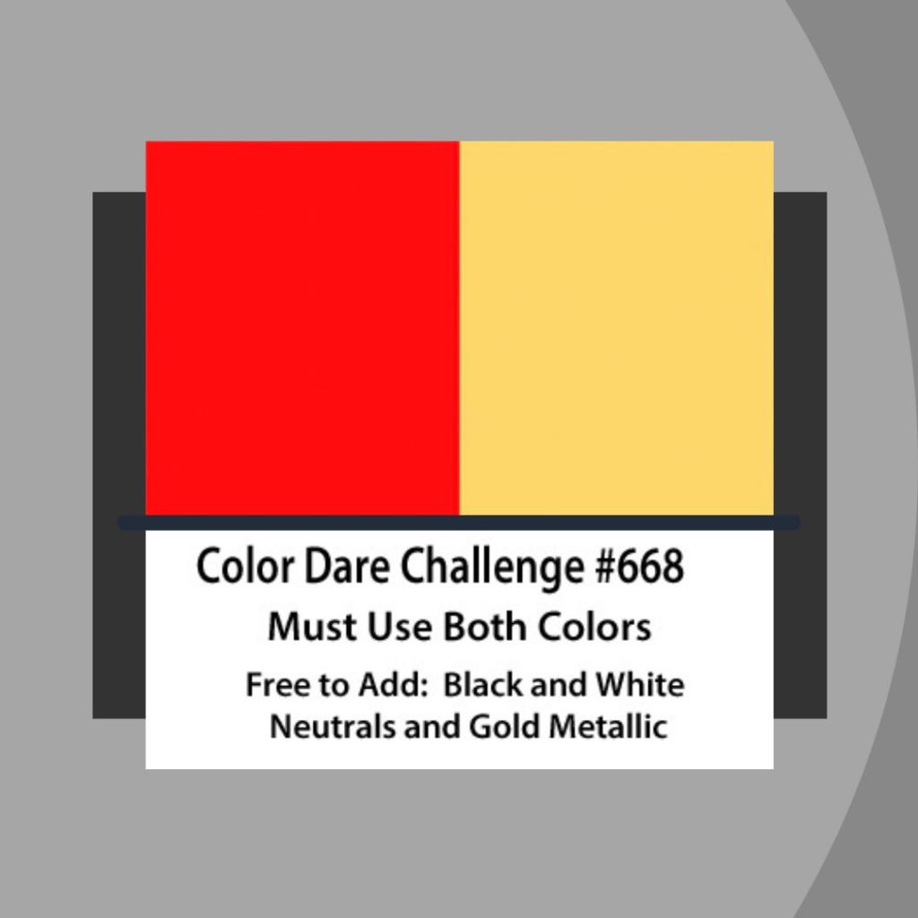 Design influences: Color Dare (#668) for a Red and Yellow pairing; Tic Tac Toe (#279) Top Line – Rectangle(s), Die Cut(s) and Stripes; and sharing with Ellibelle’s Garden Party (#7) for the Floral image chosen.