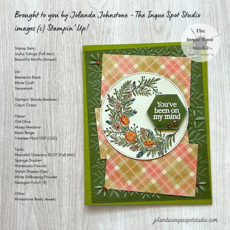 • Blocks: (3” x 1¾”) Cajun Craze and Mossy Meadow Plaid patterned pieces of paper from the Timeless Plaid Designer Series Paper pack, an On-Line Exclusive product.