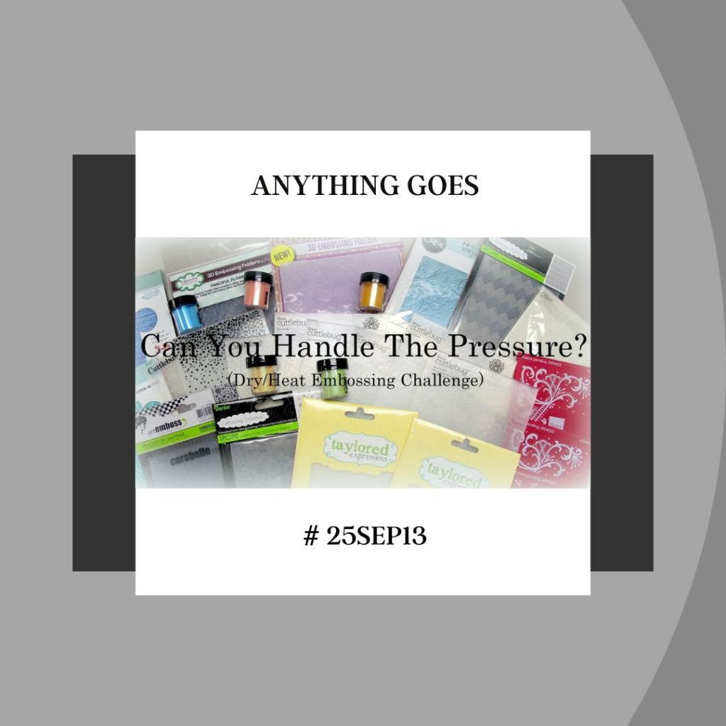 I am sharing this card with Can You Handle The Pressure (#25SEP13) Embossing with a Layers Twist and Love To Craft (#88) Anything Goes.
