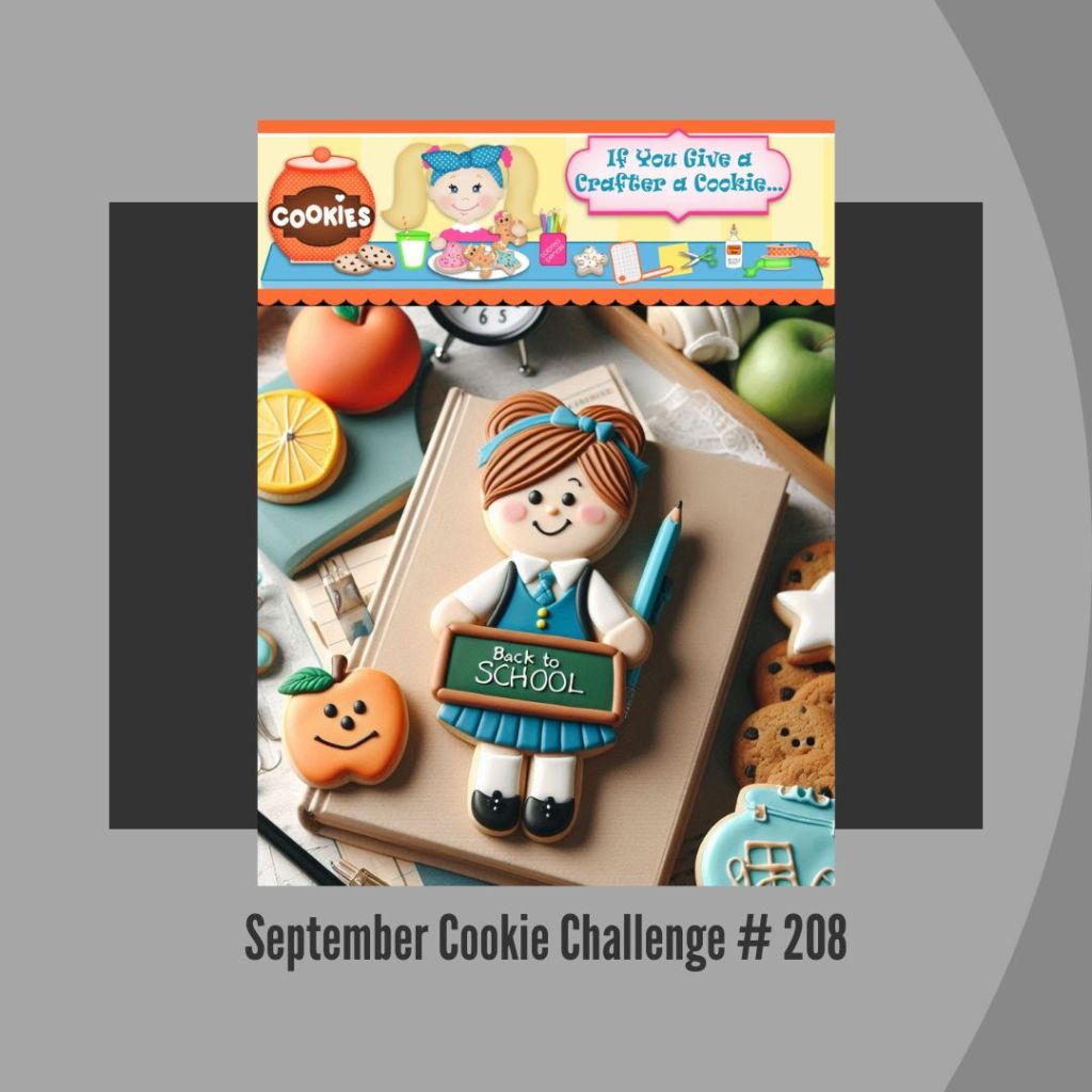 The challenges: If You Give a Crafter a Cookie (#208) for a Back to School theme; Color Dare (#671) for the Palette and bringing it all together with the current Freshly Made (#705) Sketch.