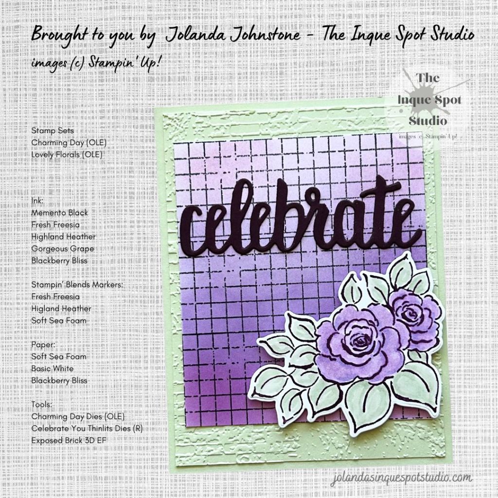 • Using Blending Brushes, Fresh Freesia, Highland Heather, Gorgeous Grape and Blackberry Bliss inks were added for an Ombre effect.