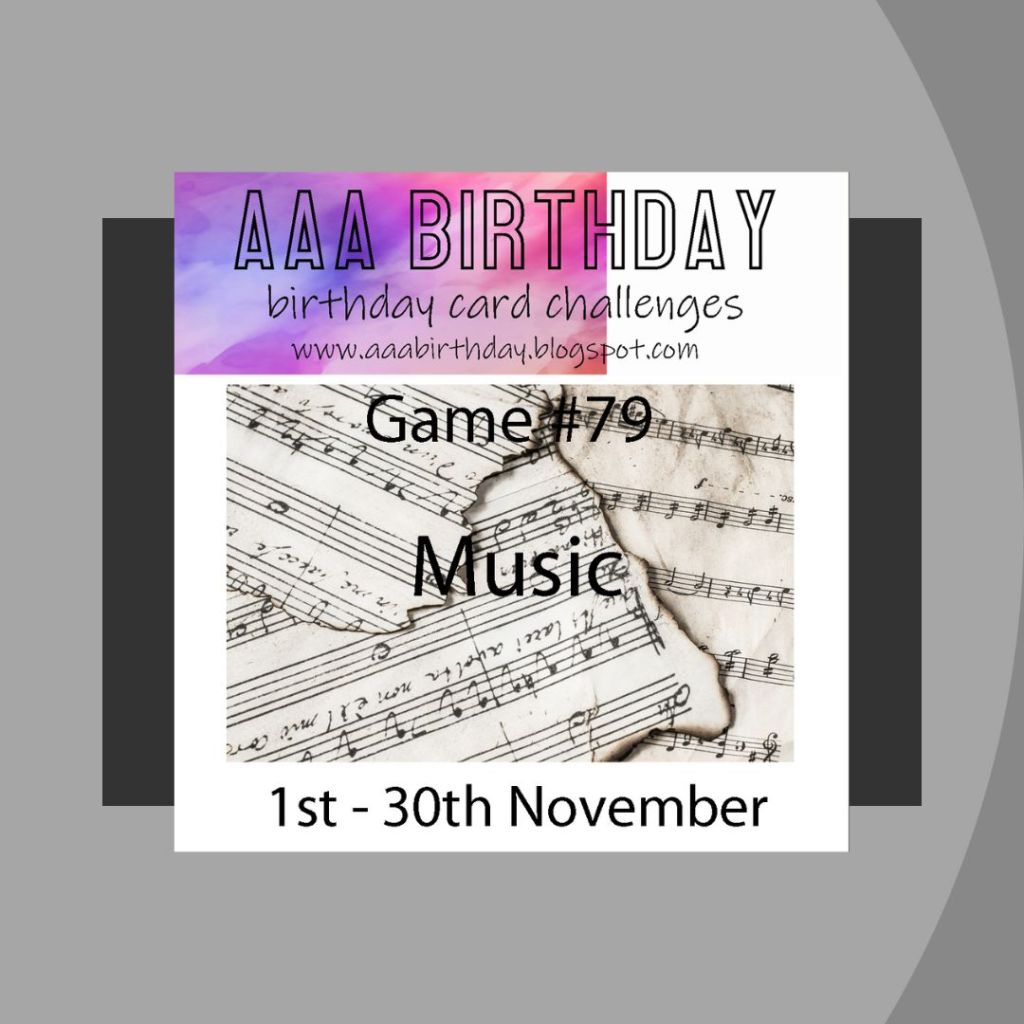 Back in the Studio…and playing with AAA Birthday Card (#79) with a Musical component and the Facebook SU! Colour (November) suggestion.