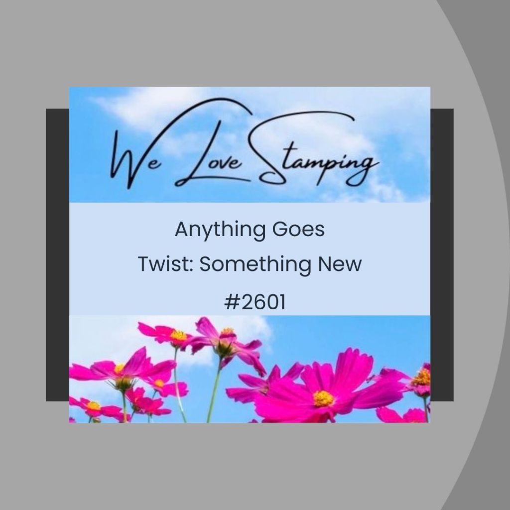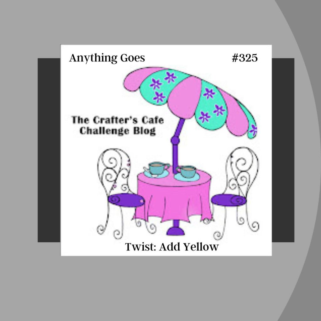 My design was influenced by: We Love Stamping (#2601) to play with something new (patterned paper & stamp set); Shopping Our Stash (#564) to play with something that was free and I worked with a gifted stamp set that I received for participating in another challenge; and Crafter’s Café (#325) to use yellow.
