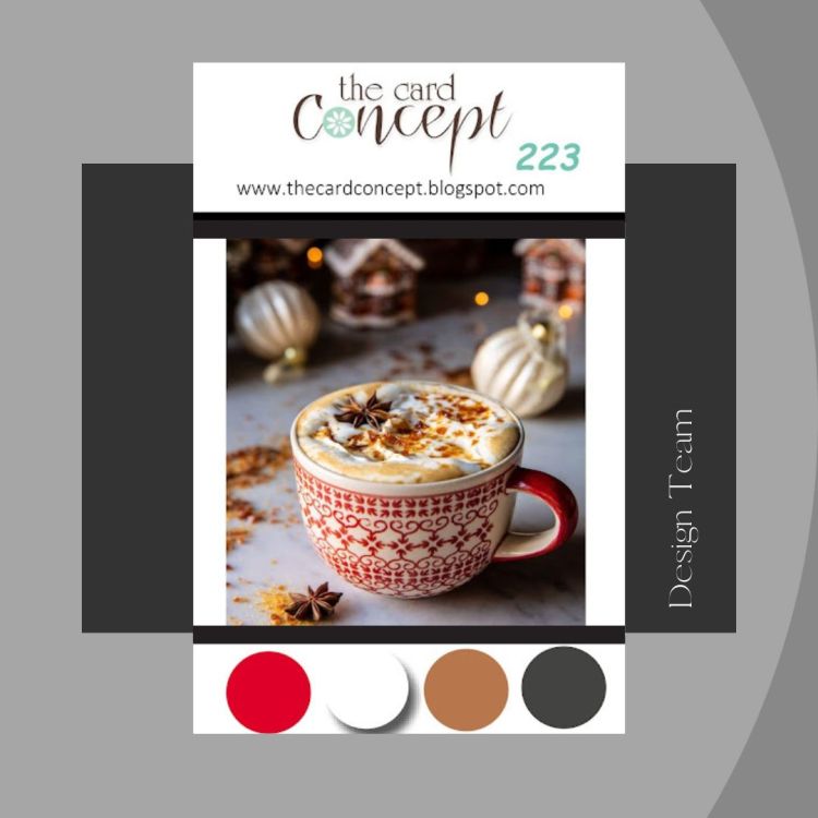 Design Team Time for The Card Concept (#223), with an Inspiration Photo and a set of cozy Colors. I opted for the Cup and Color Combo in my design.