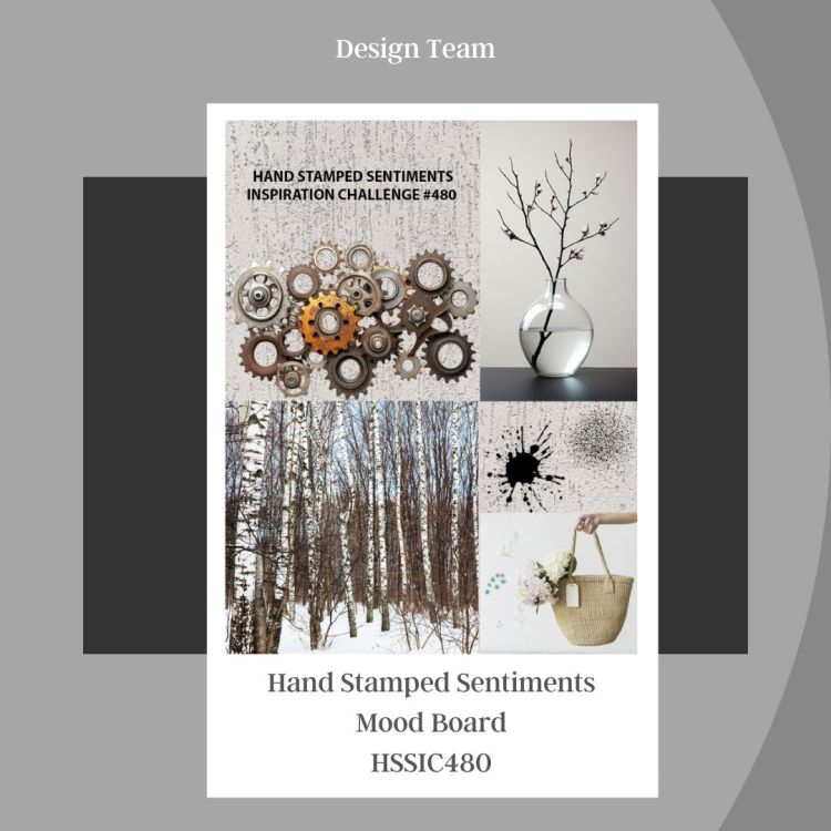 For: Hand Stamped Sentiments (#480), we have an eclectic Inspiration Board with lots of interesting images. I opted for the Birch Tree image and the overall Neutral Color Palette.