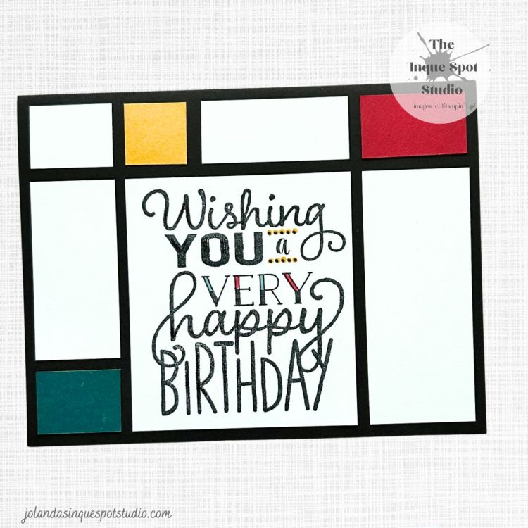 - The sentiment, Wishing you a very happy birthday, from the retired Big on Birthday stamp set was stamped with Memento Tuxedo Black ink onto the larger Block.