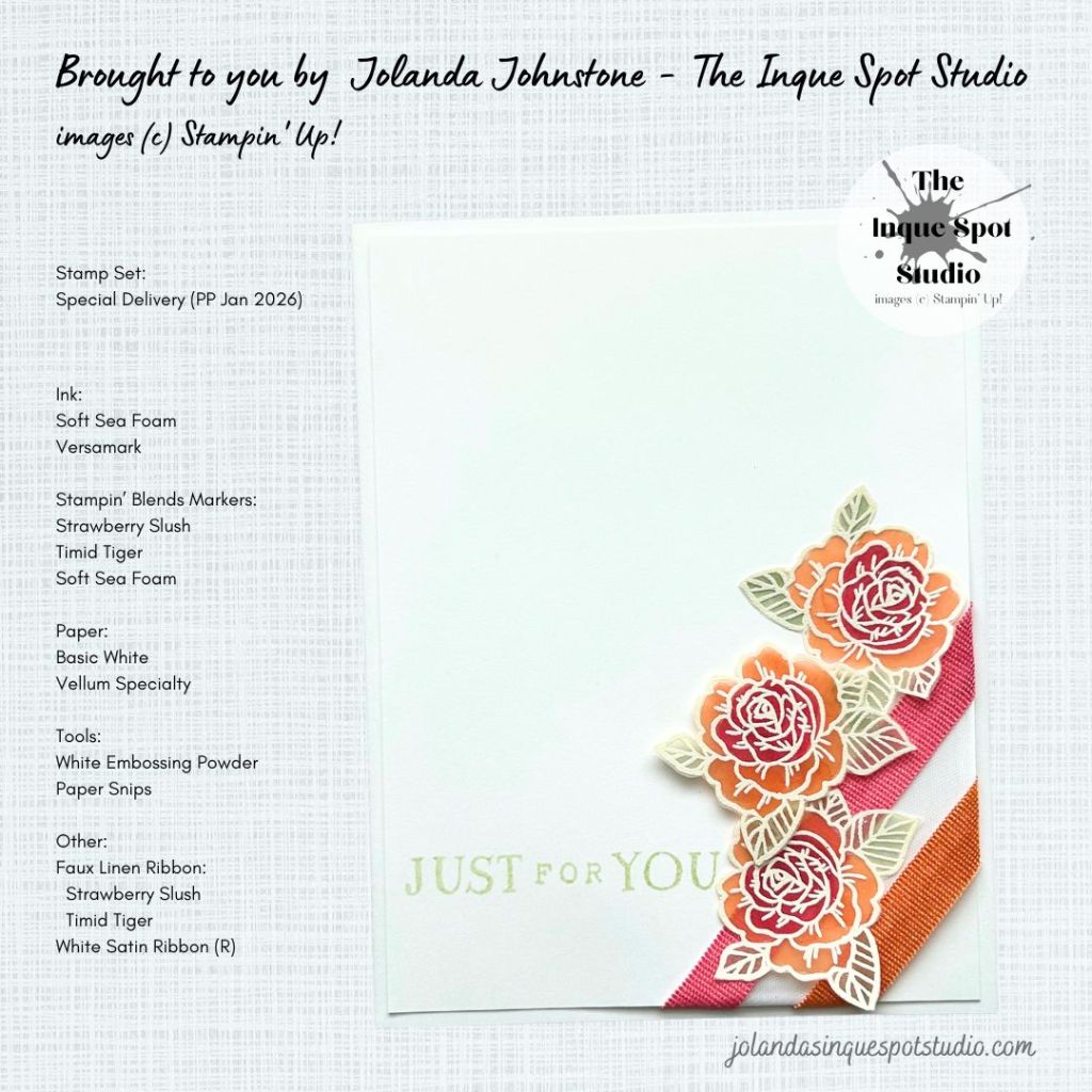 • The sentiment, Just for you, from the Special Delivery stamp set, included in the January 2026 Paper Pumpkin Kit, was stamped with Soft Sea Foam ink.
