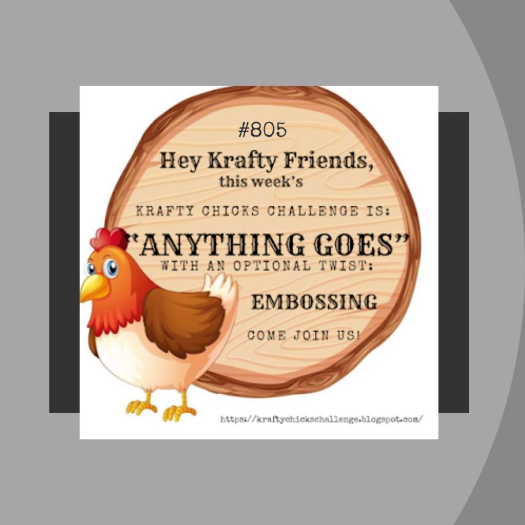 Design influenced by: Beautiful Blossoms (#37) for subject and coloring and Krafty Chicks (#805) with a twist to add embossing.