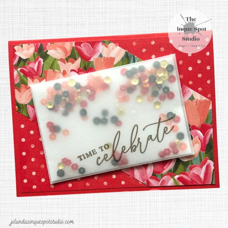 - Bling: Peaceful Poppies Sequins (retired) were added to the Envelope which was adhered in place with Tear & Tape Adhesive.