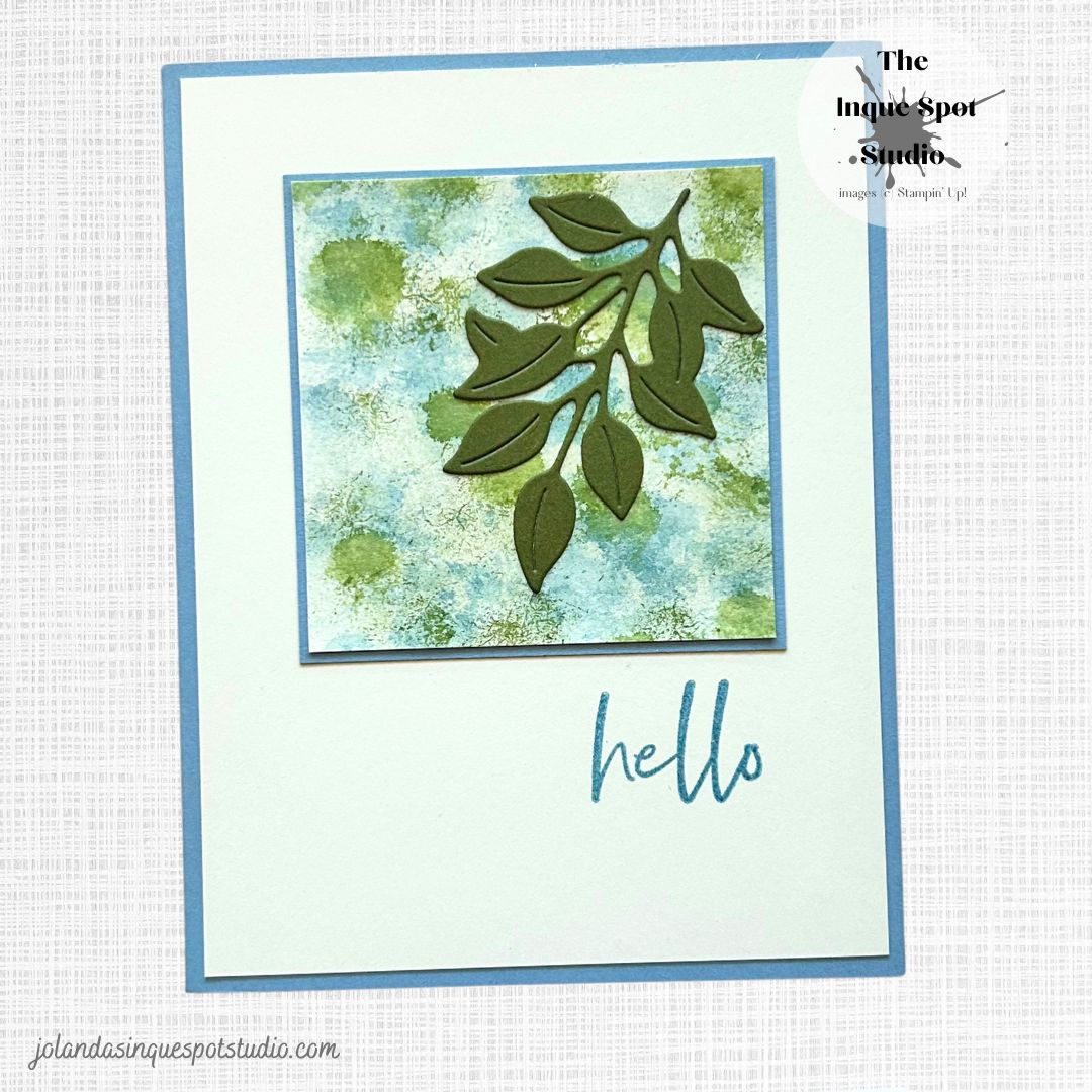 - The greeting, Hello, from the Fabulous Sayings stamp set, the Product of the Month selection for January 2026, still available, was stamped with Boho Blue ink, retired but seemed to match the lighter blue color block.