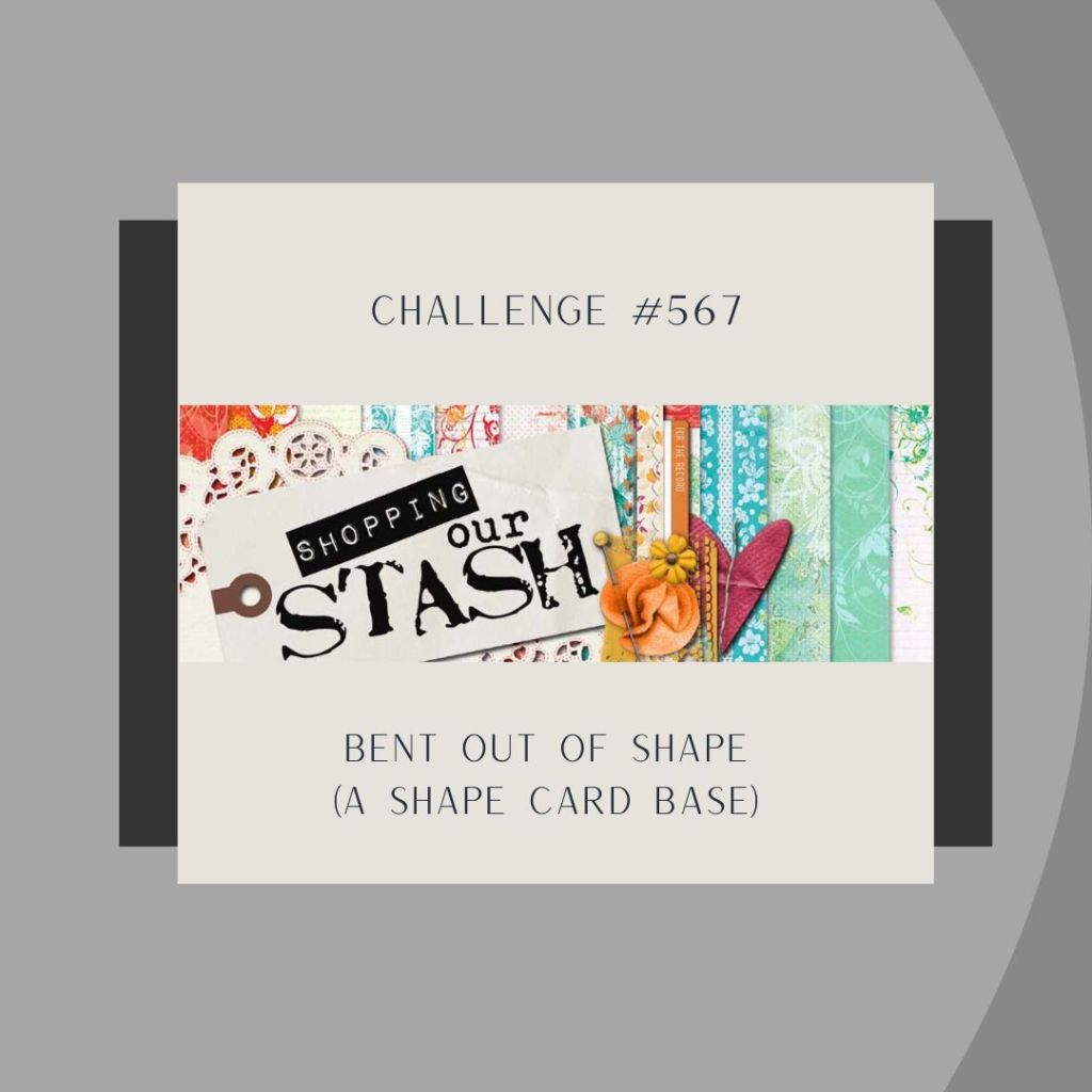 I am playing with: Festive Friday (#203) incorporating several of the required elements for a clean and simple shaped card for Krafty Chicks (#808) and Shopping Our Stash (#567).