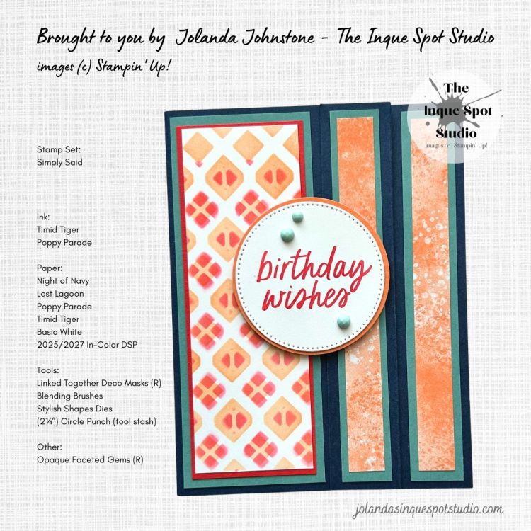 - Decorative Panels #2a: (½” x 5⅛”) Timid Tiger Splatter patterned pieces of paper from the 2025 / 2027 In-Color Collection Designer Series Paper pack.