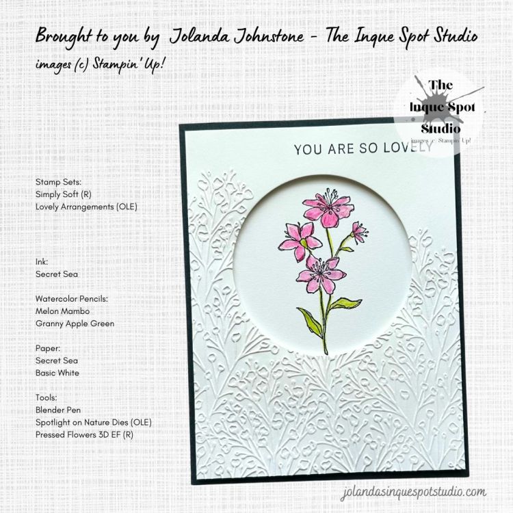 - The sentiment, You are so lovely, from the Lovely Arrangements stamp set, another On-Line Exclusive product was stamped with Secret Sea ink.