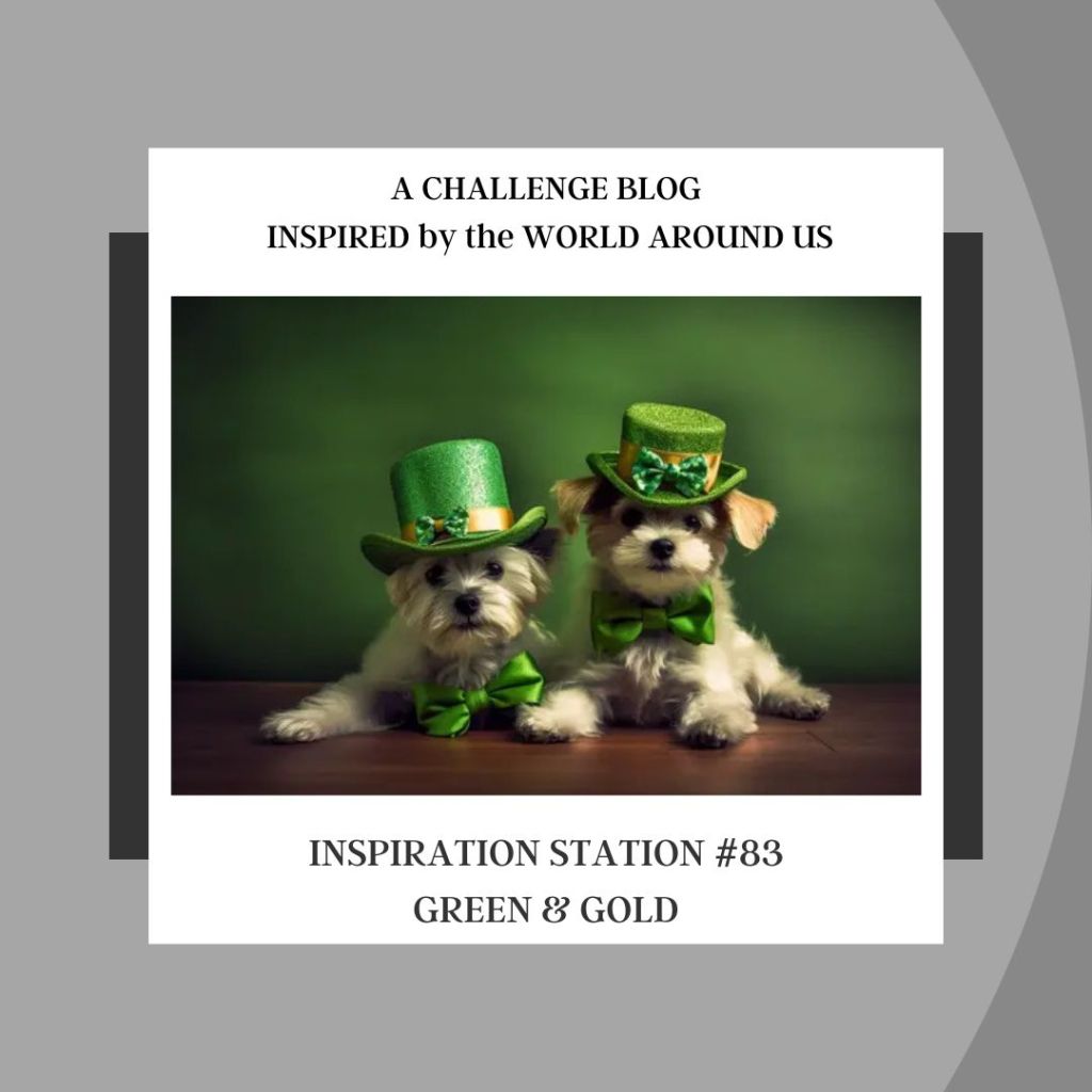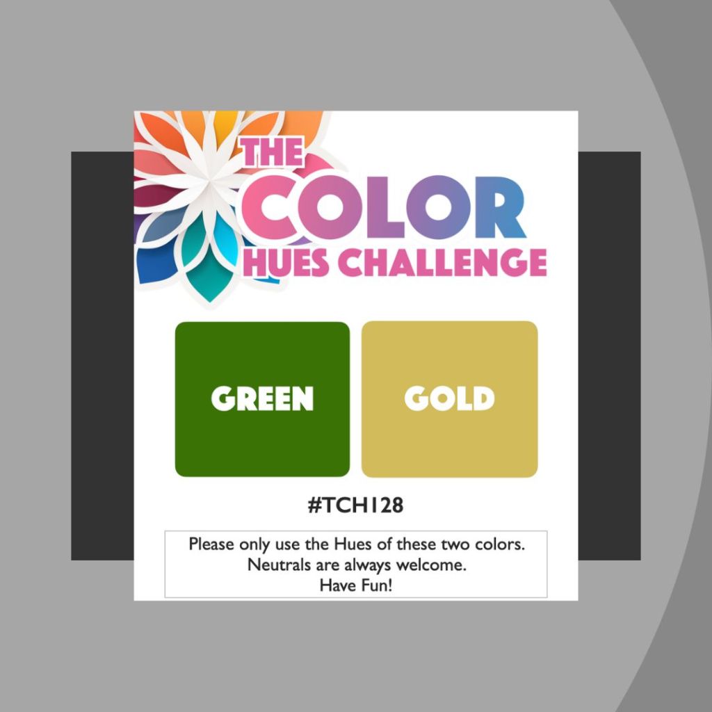 Today is mostly a color challenge day: Seize the Birthday (#322) using mostly Green; along with Color Hues (#128) Green & Gold; Inspiration Station (#83) with a Green & Gold suggestion photo.