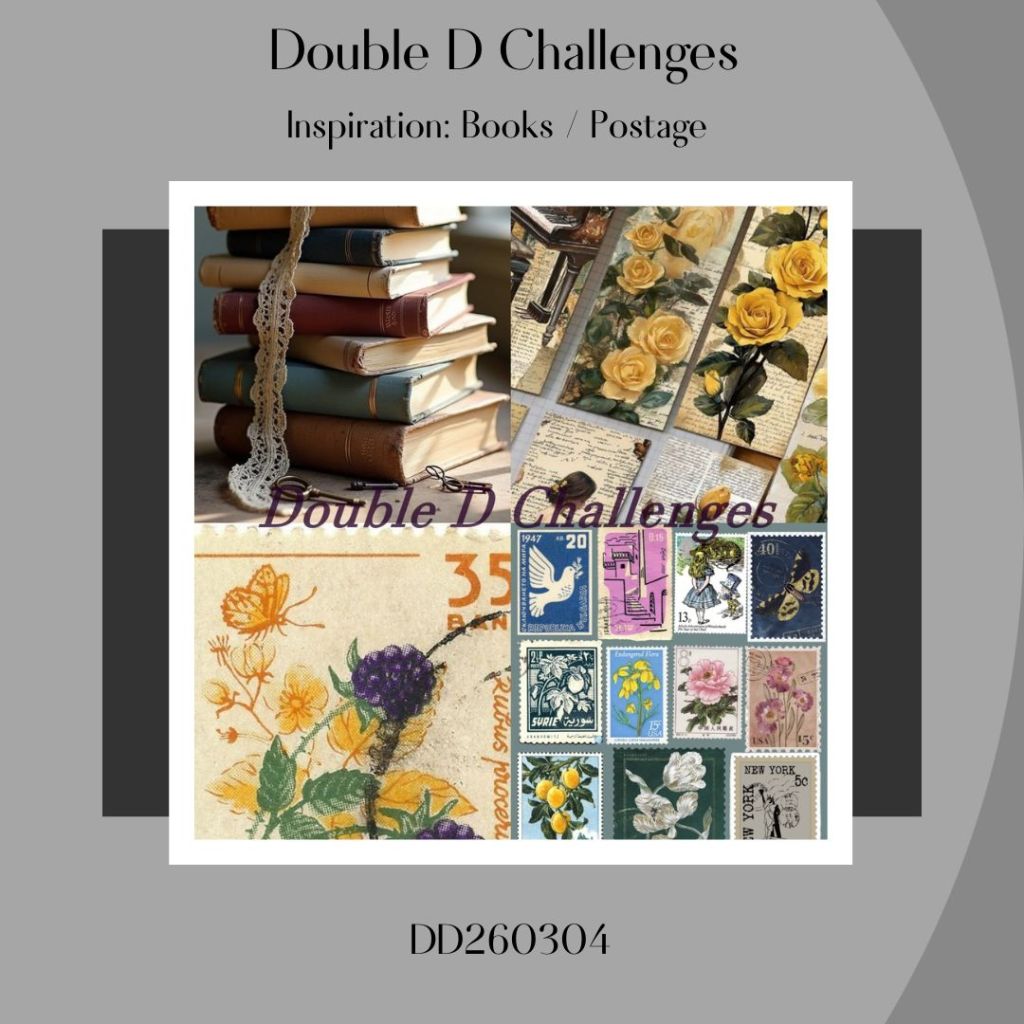 Creative Colors (#231) this week is looking for a lovely combination of Lost Lagoon, Bubble Bath and Pretty Peacock. The Vintage sheets, I chose (from where – I have no idea) seemed to fit the bill and tied in nicely with the Double D (#260304) Postage theme.