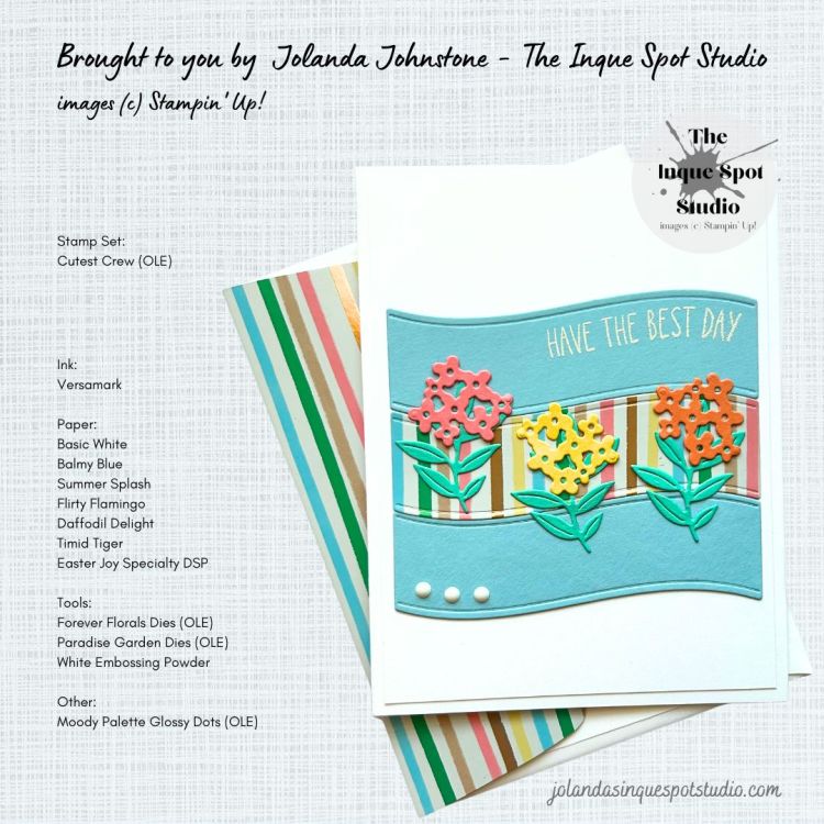 - Die Cuts: Balmy Blue, Summer Splash, Flirty Flamingo, Timid Tiger and Easter Joy Specialty Designer Series Paper (Striped pattern)