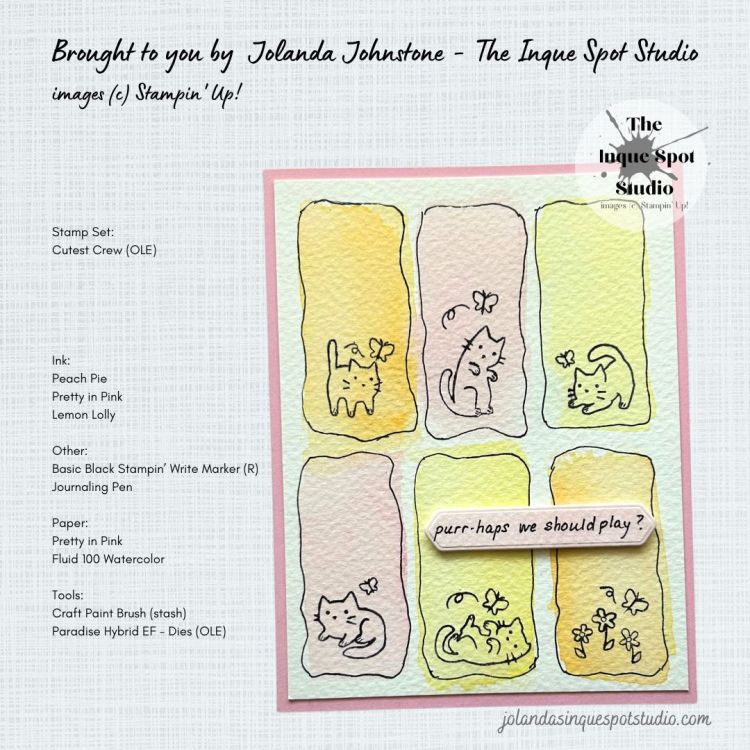 - Using the Journaling Pen, the sentiment, purr-haps we should play, was hand-lettered and then die-cut with the Label die from the Paradise Garden Hybrid Embossing Folder Dies, another On-Line Exclusive product.