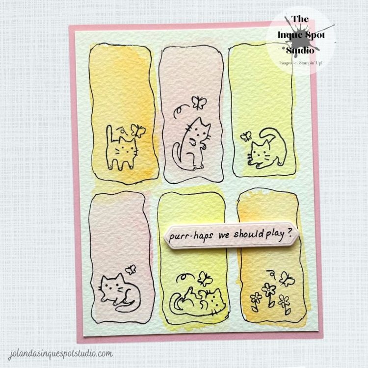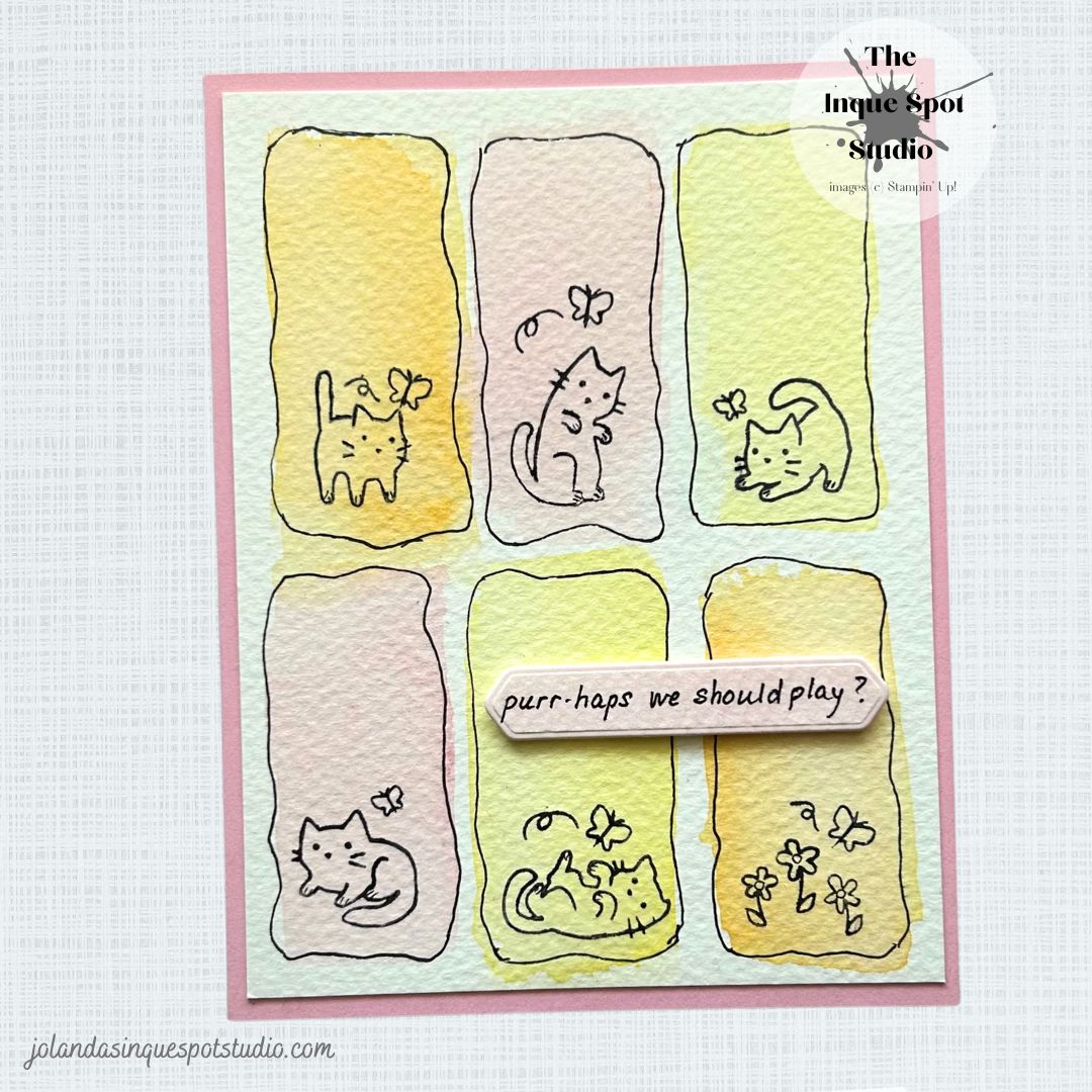 - Using the Stampin’ Up! Journaling Pen, doodled frames were added to the painted blocks and small details were added to the Cats (toes), Butterflies (bodies) and Flowers (centers).