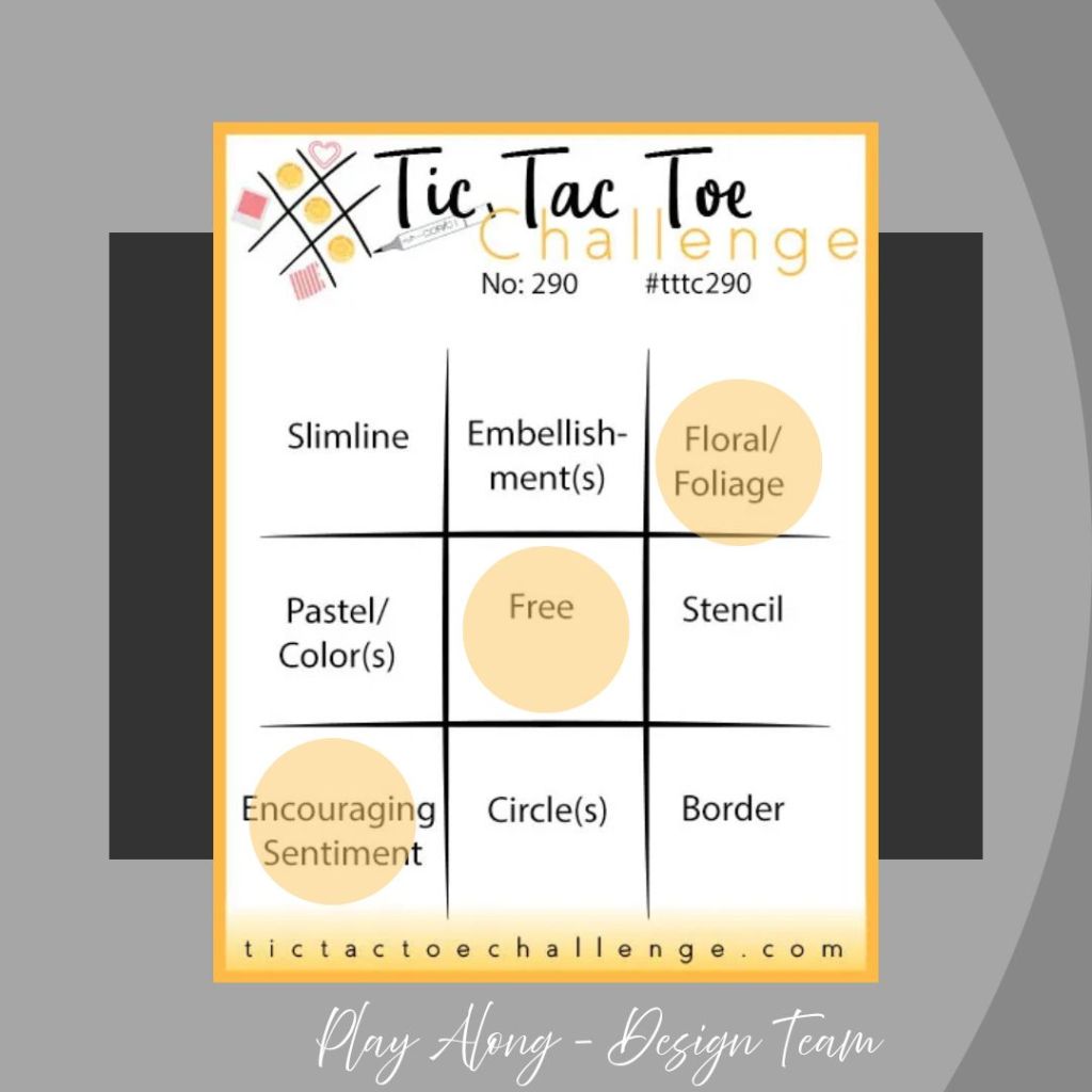 Design choices were influenced by: Just Us Girls (#819) – Spring Flowers and Tic Tac Toe (#290) diagonal – Encouragement, Floral / Foliage and FREE for which I chose Die-Cuts.