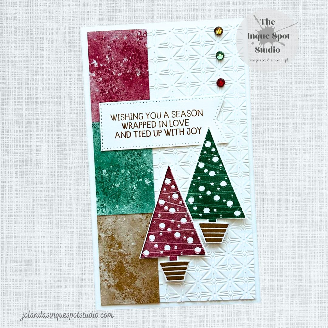 Welcome back! Happy Sunday. Chasing a few deadlines… Playing with Double Trouble (#204) and the 3-2-1 Recipe (3 Colors, 2 Images and 1 Slimline styled card) with a “T” Twist (Trees) and partnering with Try Stamping on Tuesday (#683) for the Sketch. I selected Facebook’s Colour INKspiration (#199) colors and tying in with the Stampin’Continue reading “Gift of Joy – Festival of Trees”