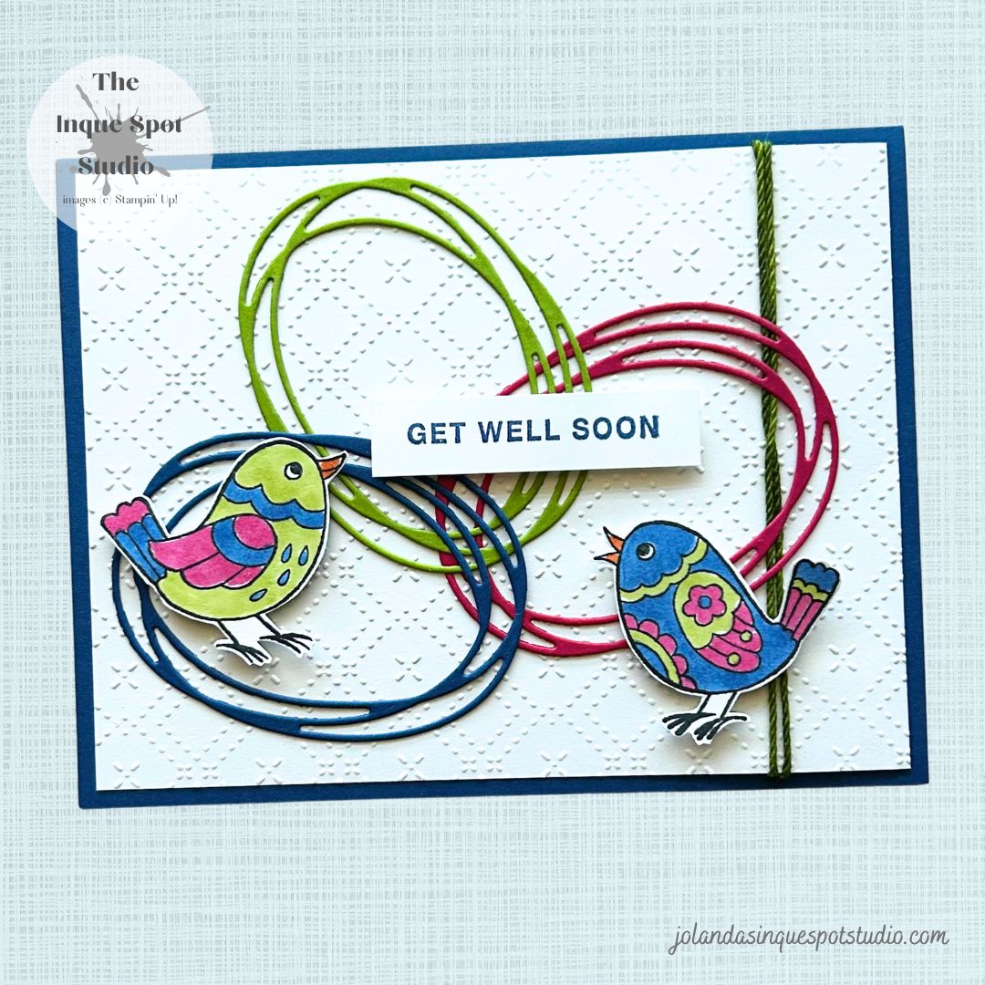Welcome back! Having a bit of fun this Thursday afternoon… Playing with the following challenges: Double Trouble (#203) 3-2-1 for Round Shapes, Images and Twine with a Bird Twist; Cupcake Inspirations (#630) for a Get Well card and choosing the happy bright and pick-me-up colors suggested by Color Dare (#675). Here is the result: Steps:Continue reading “Feathery Friends – Get Well”