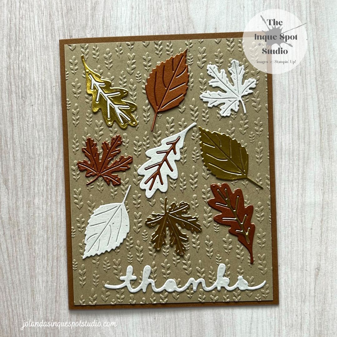 Hi again! I have some more time to create…so let’s play… Inspired By (#354) Hello Autumn for colors, metallics and a variation of the sketch. Additionally, Make My Monday (#261) also an Autumn theme; and Addicted to CAS (#292) for Leaves and Style. Here is the result: Steps: All elements were adhered to theContinue reading “Autumn Leaves – Thanks”