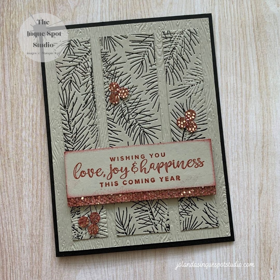 Welcome back to the Studio! Playing with a few challenges today and created another Holiday card. Sketch: TGIF (#337), Colors: Global Design Project (#313) and Technique: Just Us Girls (#605). Here is the result: Steps: Technique (1) Heat Embossing with an Embossing Folder Panel Strips: (3” x 3¾”) Sahara Sand cardstock. Versamark ink was addedContinue reading “Encircled in Warmth – Love, Joy and Happiness”