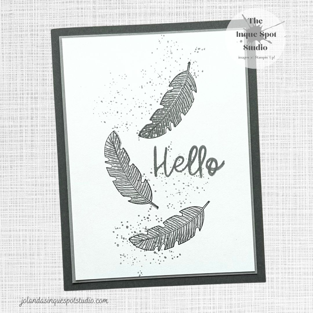 Hi again! A quick clean and simple card for you this afternoon… The challenges: CAS on Friday (#320) with a Feather theme; Krafty Chicks (#791) with a Masculine theme; AAA Cards (#301) with a Gray Monochrome color scheme; and Addicted to Stamps & More (#504) to create for any occasion. Here is the result: Steps:Continue reading “Feather Fall – Hello”