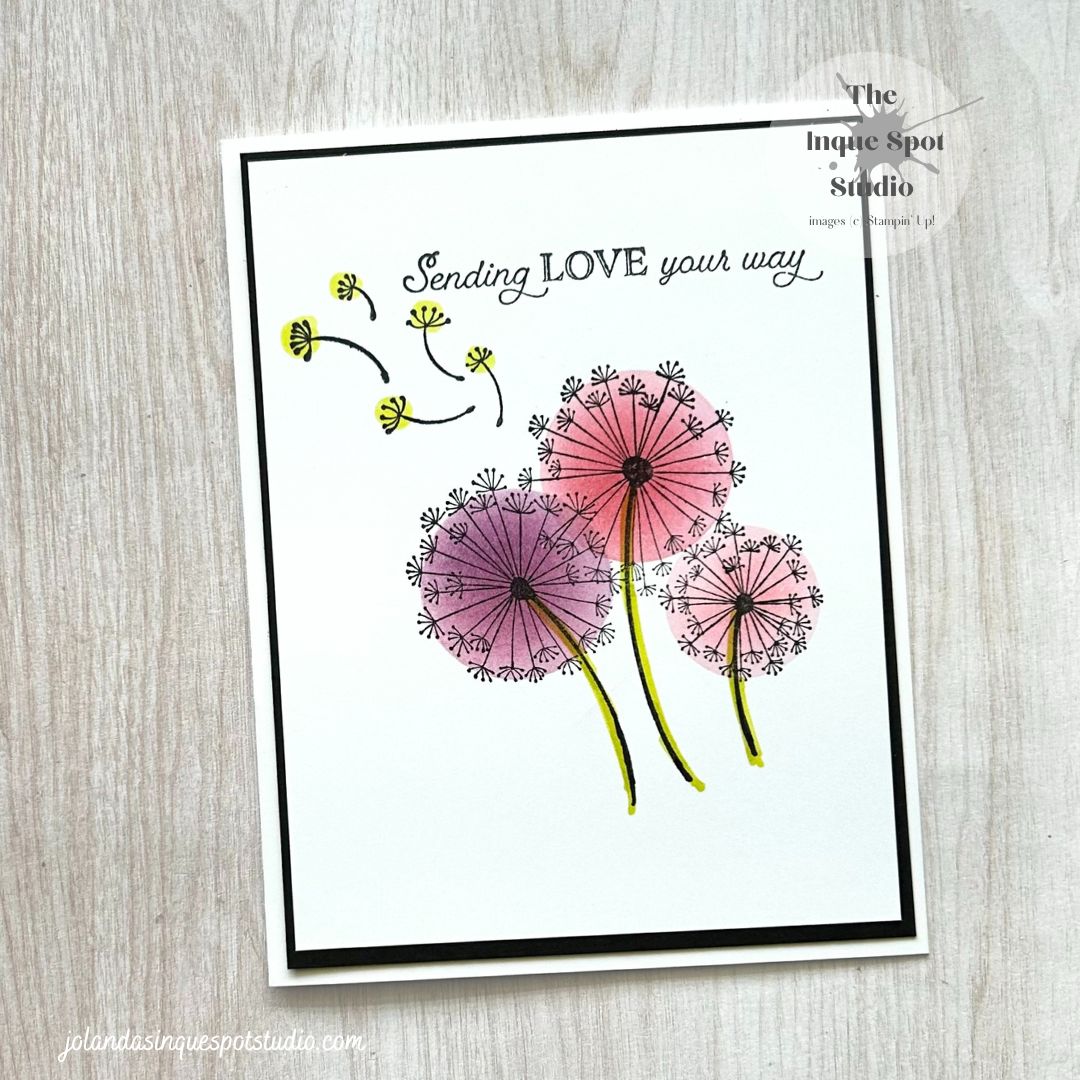 Welcome back! Already Wednesday. Another quick and simple stamped card for you today. The Inspired by (#334) Photograph presenting Circle Shapes and Luscious Pink/Purple/Lime Colors was where I started. Influenced by the Retro Rubber (#254) Spring Flowers, The Flower Challenge (#102) to add Spots, and sharing with Simply Clean & Simple (#23) for their FloralContinue reading “Dandelion Wishes – Sending Love”
