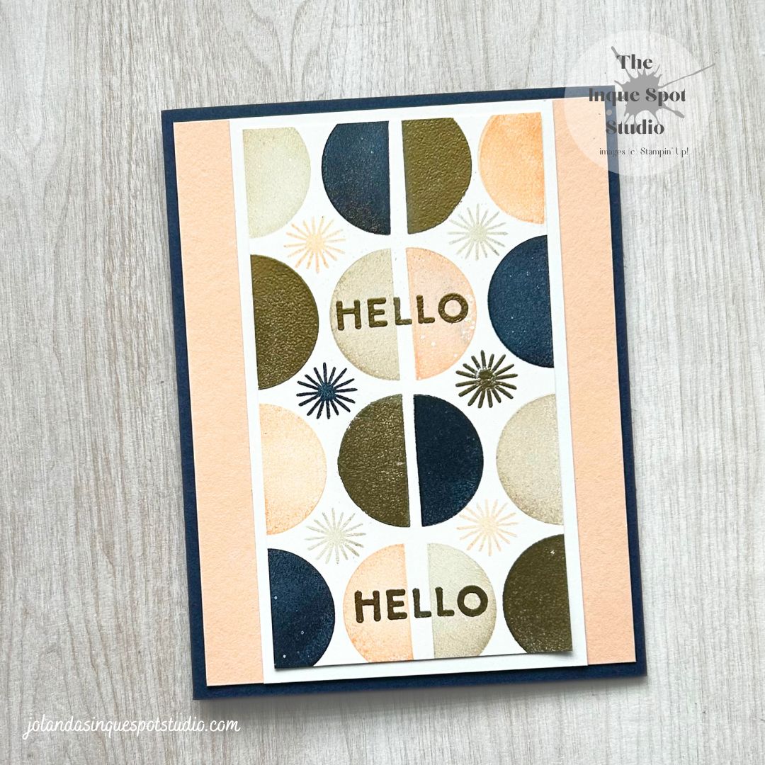 Hi again! Guess what? The “Man in Brown” came by and I have received a few new things, including the Summer Vibes stamp set. Yesterday, Facebook’s Stampin’ Through The Catalog was featuring this stamp set and I paired it up with Facebook’s SU! Colour (June) Palette for a fun simple stamping geometric card. Just Stamps,Continue reading “Sunshine Vibes – Geometric Hello”