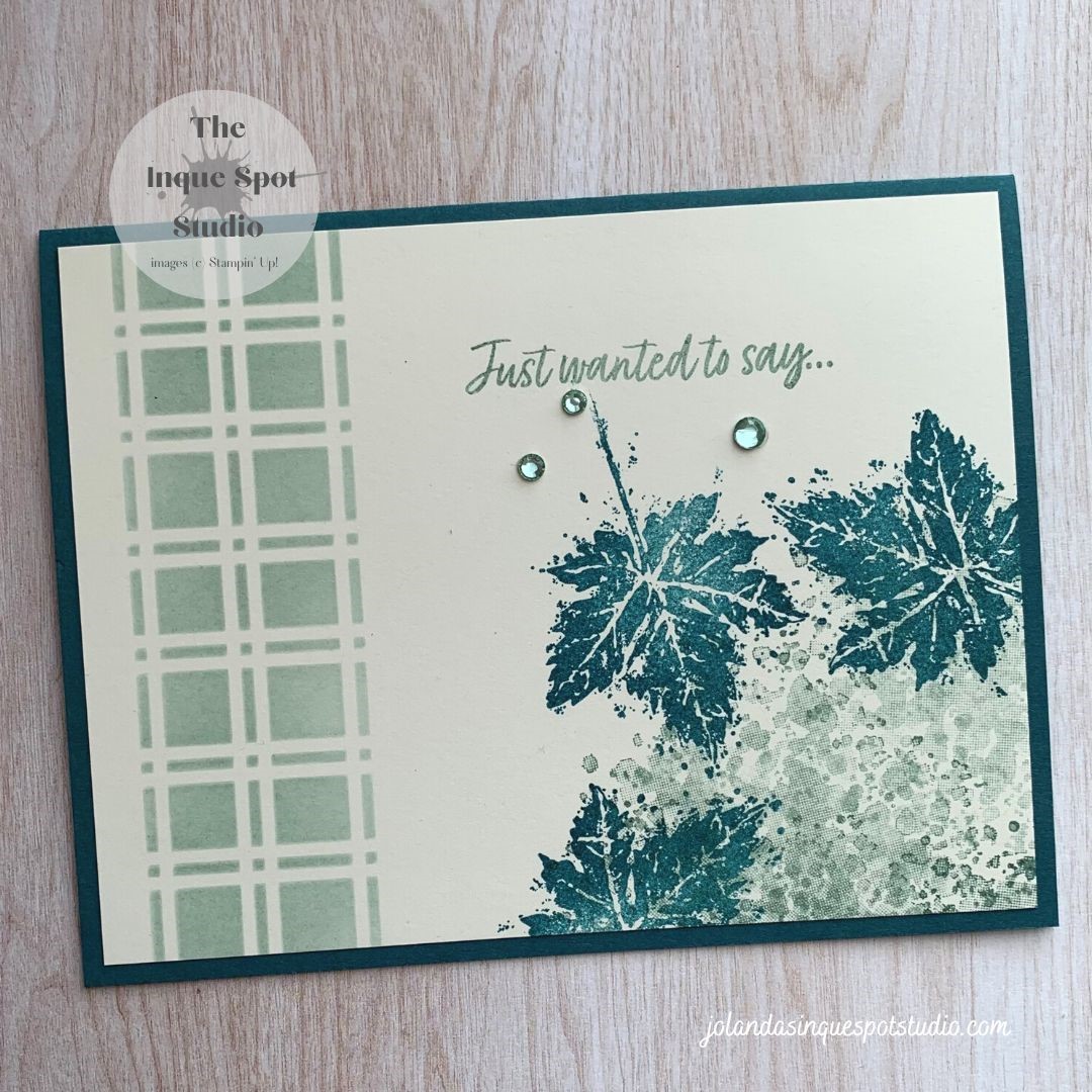 Hi! A new set of challenges and I have the house all to myself today! Play Time! A clean and simple card for Addicted to CAS (#244) including the elements suggested by The Male Room (#177) and the colors I picked from Color Dare (#560) with the Sketch Saturday (#732) layout. Here is the result:Continue reading “Gorgeous Leaves – Just Wanted To Say”