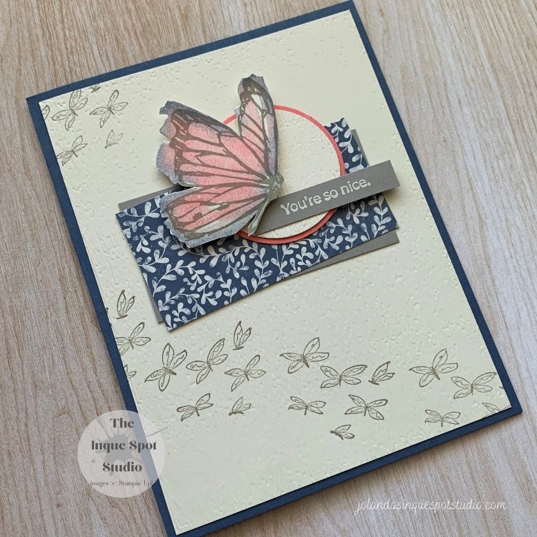 To put up with me and all my posts. I get so energized by working through various challenges. Working in the Studio is my happy place! So this is what I worked on this afternoon. I liked the color combination from the CAS Color and Sketches Challenge #407 this week. Misty Moonlight, Flirty Flamingo andContinue reading “You’re So Nice”