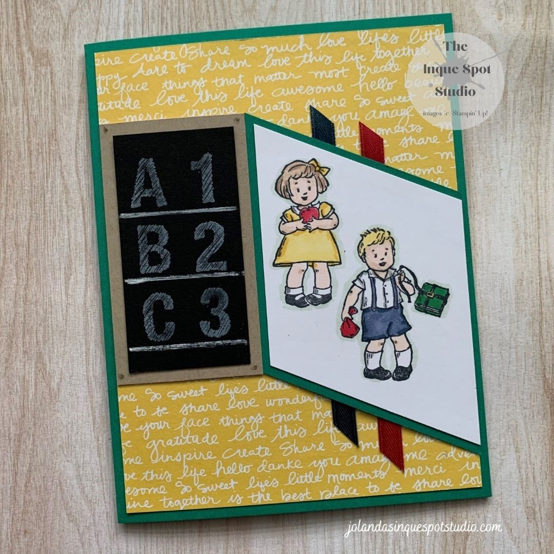 This card is a real mash-up of challenges. However, getting ready for school was one of my favorite things to do. Even today, when I pass the School Supply aisles in the store, my heart quickens…So indulge me as I take a trip down memory lane! Sketch: Sketch Saturday Challenge (#672); Theme: Stampin’ Up! OnlyContinue reading “ABC / 123 – It’s Back to School for You and Me!”