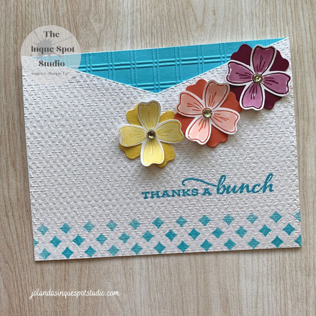 Hi! Welcome back to the Inque Spot Studio. Playing with a few more challenges this morning… Sketch: Tuesday Morning Sketches (#665); Color: Color Throwdown (#701) and Tic Tac Toe (#170) for some of the elements. Here is the result: Steps: Card Base: (8½” x 5½” scored at 4¼”) Basic White cardstock. Background Panel: (5½” xContinue reading “Flowers of Friendship – Thanks”