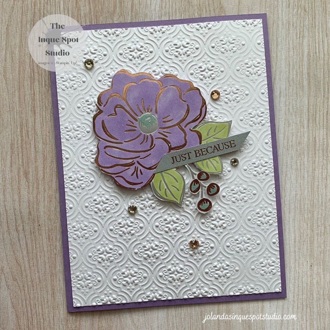 Deadlines two and three…Welcome back! Sketch – Global Design Project (#370) and Color: Creative Colour (#64). Here is the result: Steps: All elements were adhered to the card front to resemble the sketch. The Winter Rose and Sentiment Banner were popped-up with Dimensionals. Champagne and Basic Rhinestone Jewels were added for a bit of bling.Continue reading “Winter Rose – Just Because”