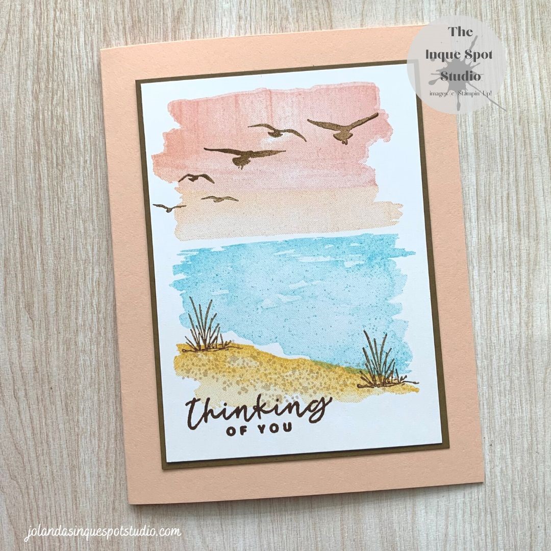 Welcome back! I have a sweet clean and simple #simplestamping card for you today. Playing with: Facebook Colour INKspiration (#128), CASology (#406), Inspiration Station (#36) and Stampin’ Up!’s Simple Stamping Challenge (September). Here is the result: Steps: Are you tempted to just “Jump In” into this beautiful blue ocean after running down the “Sandy” beach?Continue reading “Ocean Front – Thinking of You”