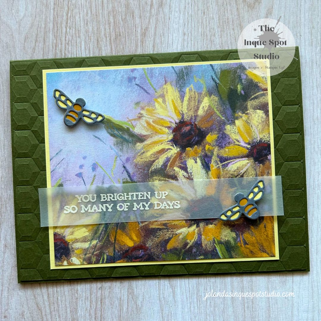 A couple of challenges just seemed destined to work together… A favorite color challenge of mine is the Facebook group – Colour INKspiration. The current colors (#115) are So Saffron, Bumble Bee, Cajun Craze and Gray Granite. Over at the Cookie Challenge (#165), the inspiration photo includes Bumble Bees, Daisies and similar colors. Here isContinue reading “Honeybee Home – You’re the Nicest”