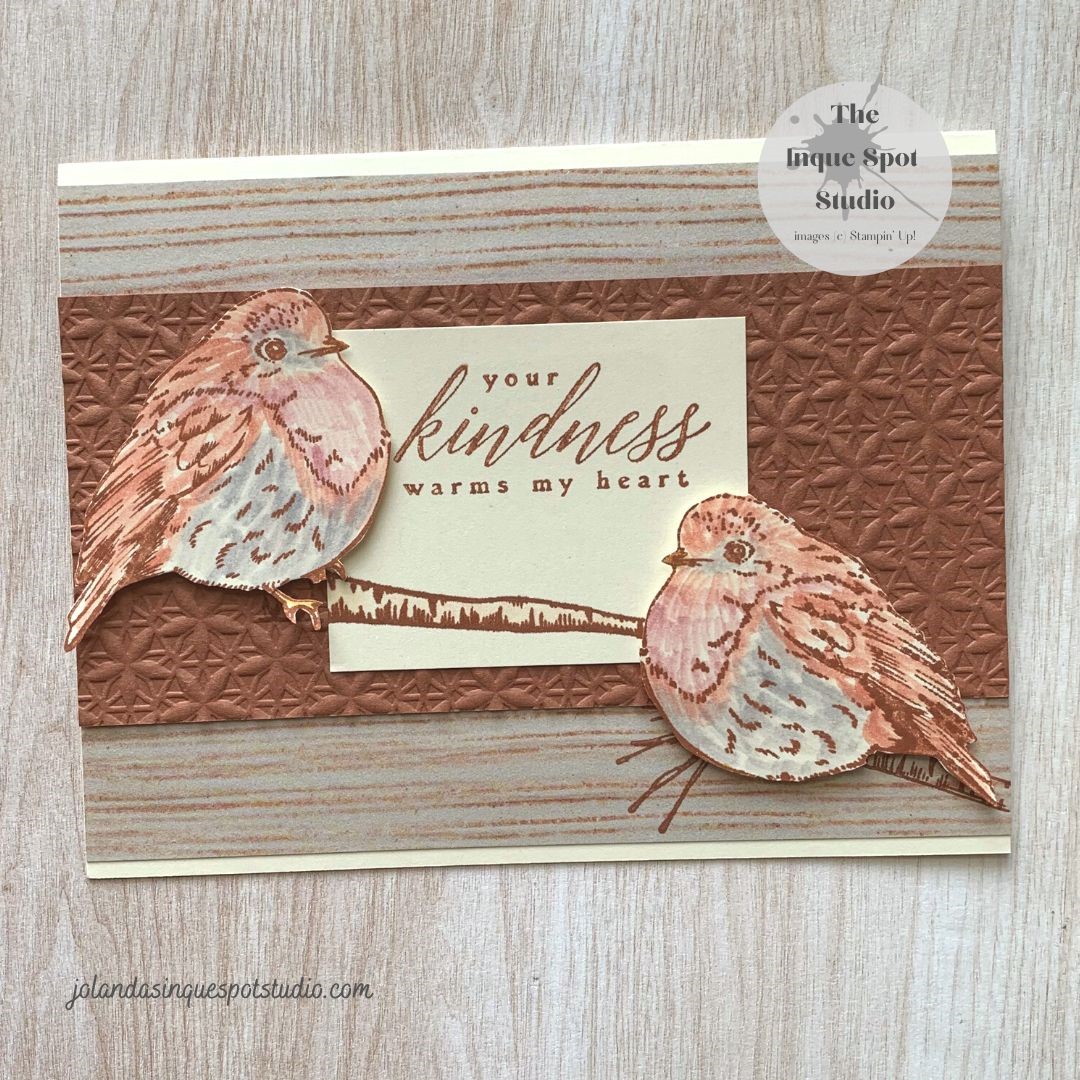 Hi! Welcome back. Working with this week’s Facebook Case-ing Tuesday (#411) sketch. Having a play with the Perched in a Tree stamp set and mixing in the new neutral color Copper Clay for the challenges Can You Handle the Pressure (#32) and incorporating additional colors for Color Dare (#550). Here is the result: Steps: AllContinue reading “Perched in a Tree – Kindness”