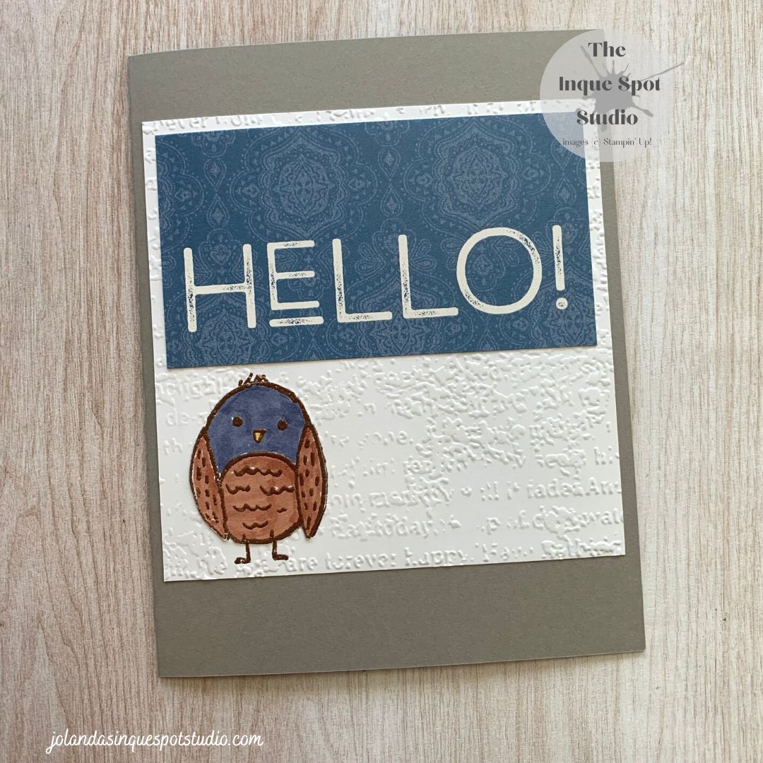 Welcome to the middle of the week! Had a lovely class this afternoon and now I am catching a deadline. Playing with the colors from As You See It (#309) and predominately the sketch from Inspired By (#258) incorporating the Fall copper color found in the grass, hay, leaves and trees. Instead of Pumpkins, IContinue reading “Bird’s Eye View – Hello”