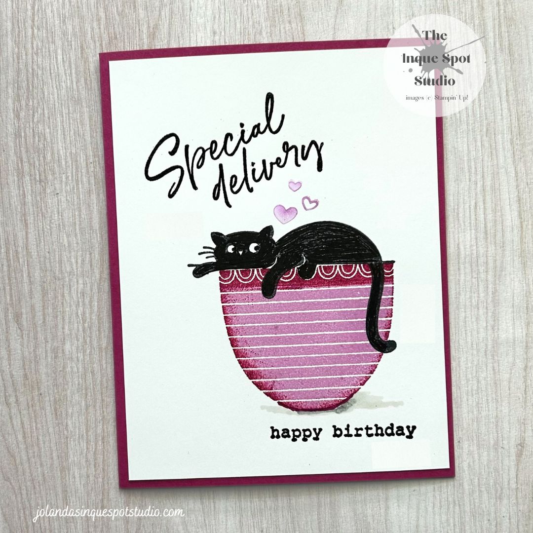 Welcome back! I am back from a few days of R&R and getting in a quick clean and simple card for a few challenge deadlines. Playing with: Shopping Our Stash (#556) for the subject; Seize The Birthday (#313) to add some embossing; Krafty Chicks (#786) for the card style and sharing with We Love StampingContinue reading “Special Delivery – A Cat in the Bag”