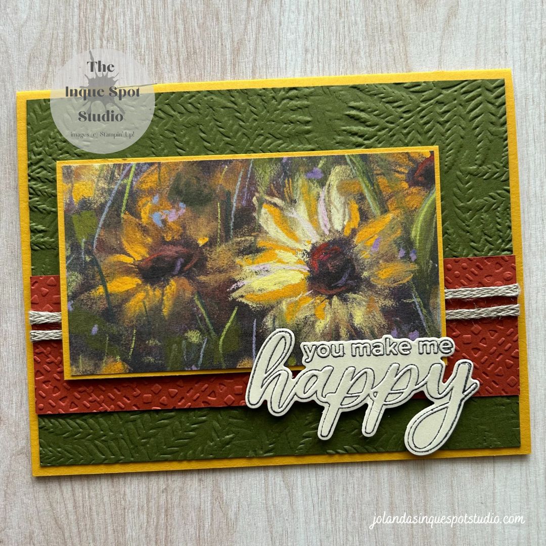 Welcome back! Sneaking in a quick card post this afternoon’s class… The Challenges: Just Us Girls (#745); Beautiful Blossoms (#21); As You See It (#332); and sharing with Ellibelle’s Crafty Wednesday (September). Here is the result: Steps: All elements were adhered to the card base to resemble the sketch. A lovely Fall Floral card. ThanksContinue reading “Splendid Autumn – You Make Me Happy”