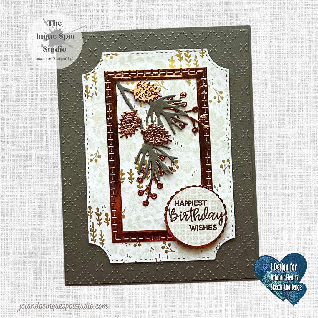 Hi again! Design Team Time for the Atlantic Hearts Sketch Challenge (#656). A lovely Frame -Up with lots of possibilities. My design was influenced by: Seize The Birthday (#316) to use Christmas elements to create a birthday card and Inspired By (#326) for the Colors chosen – Copper, Gray and Champagne/Beige/White. Here is the result:Continue reading “Branching Out – Birthday Wishes”