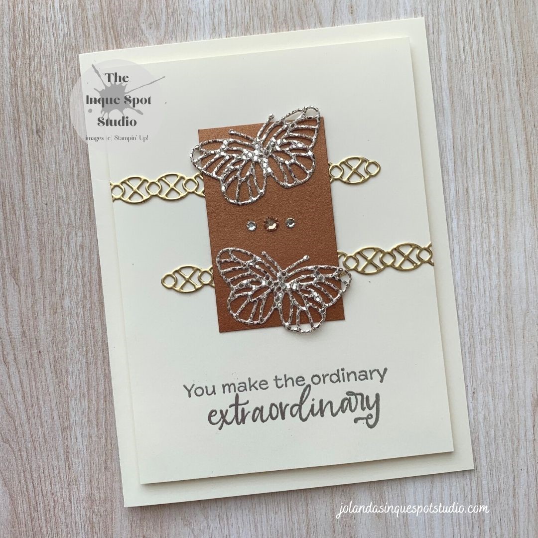 Playing with a few other challenges this afternoon. Sketch: Atlantic Hearts Sketch Challenge (#434), Theme: CAS on Friday Challenges (#212) and Tools: Happy Little Stamper Challenges for August. Here is the result: Steps: I die-cut two Butterflies from the free Sale-a-bration Be Dazzling Specialty Designer Series Paper with one of the Butterfly dies from theContinue reading “Extraordinary Bedazzled Butterflies”