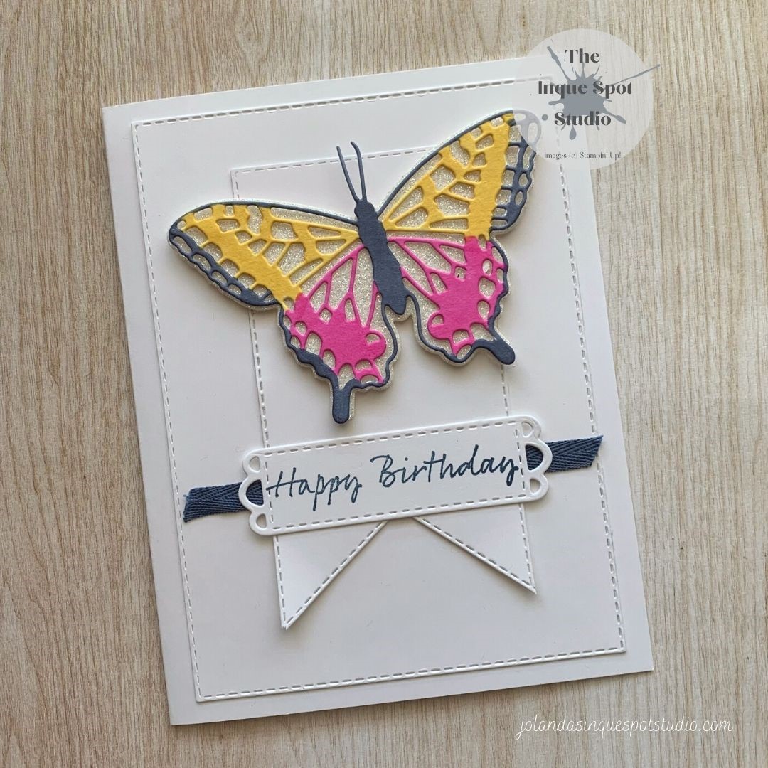 Another Butterfly…I love the Butterflies…they are so pretty… The current challenge over at Just Us Girls (#619) invites you to create your own Stencils using Dies. What I great idea! The die sets that I chose were: Tasteful Labels, Brilliant Wings and the retired Ornate Borders. To complement the Stencils I created, I chose theContinue reading “Brilliant Wings – Happy Birthday”
