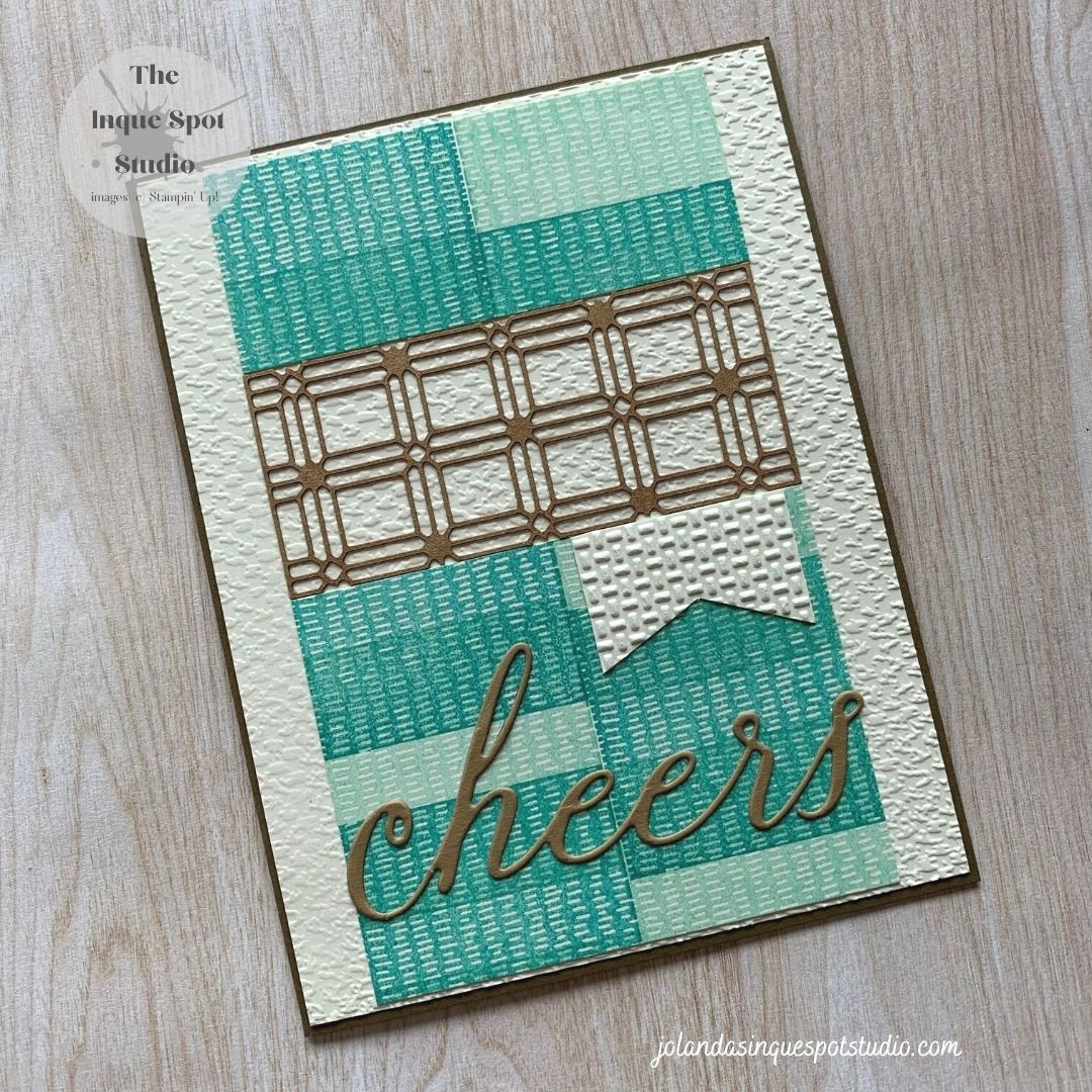 On to another couple of challenges… Sketch – Try Stampin’ on Tuesday (#507) and the Cardz 4 Guyz Challenge (#271) And this is the result: Steps: To make my own Background, I added one of the Square image stamps from the All Squared Away stamp set to the Stamparatus positioning tool and hinged stamped theContinue reading “All Squared Away – Cheers”
