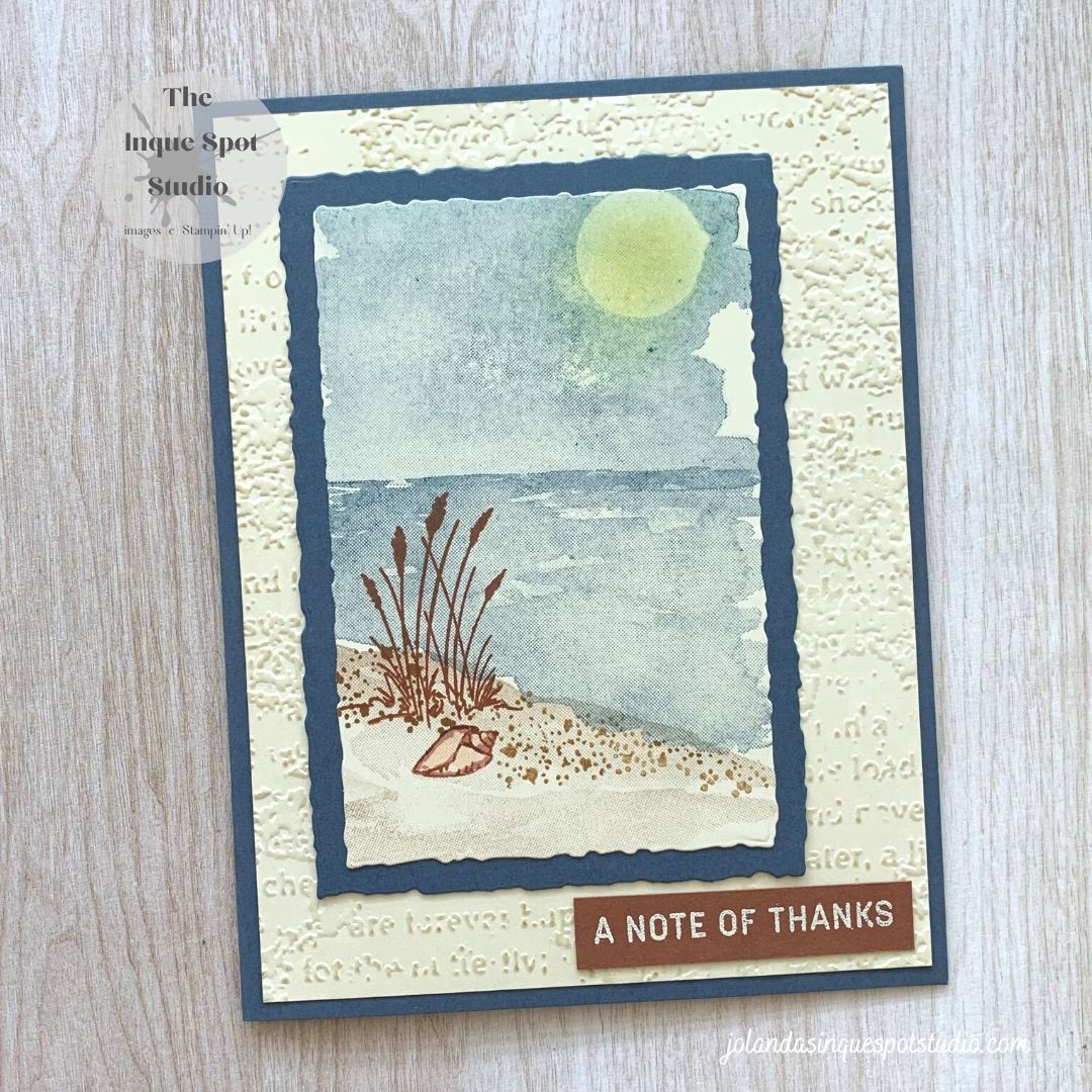 Tuesday – Design time and today I am combining Cardz 4 Guyz (#329) theme with the Hand Stamped Sentiments (#421) colors. A few other challenges are sporting a similar theme, so I incorporated their requirements into the card as well: Festive Friday (#141) and Facebook Joy of Sets (August). Here is the result: Steps: AllContinue reading “Ocean Front – A Note of Thanks”